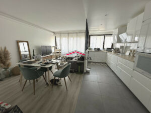 Pièce de vie spacieuse de 29 m² avec cuisine intégralement aménagée et équipée,