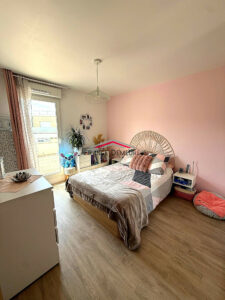 L’espace nuit propose une chambre confortable ainsi qu’une salle d’eau avec WC, le tout dans une décoration soignée et actuelle, prête à accueillir ses nouveaux propriétaires sans travaux.