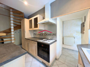 Au rez-de-chaussée, vous trouverez : une entrée avec placard, une cuisine aménagée et entièrement équipée ouverte sur un agréable séjour avec cheminée, ainsi qu’une salle d’eau avec WC.