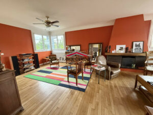 - À l’étage, le palier dessert deux grandes chambres, un dressing et une salle de bains récemment rénovée avec douche, baignoire et WC.