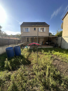 À l’extérieur, la maison dispose d’une terrasse de 28 m² avec préau, sans vis-à-vis, d’un jardin clos et arboré ainsi que d’un garage indépendant. La construction est isolée, et le chauffage est au gaz, garantissant confort et économie d’énergie.