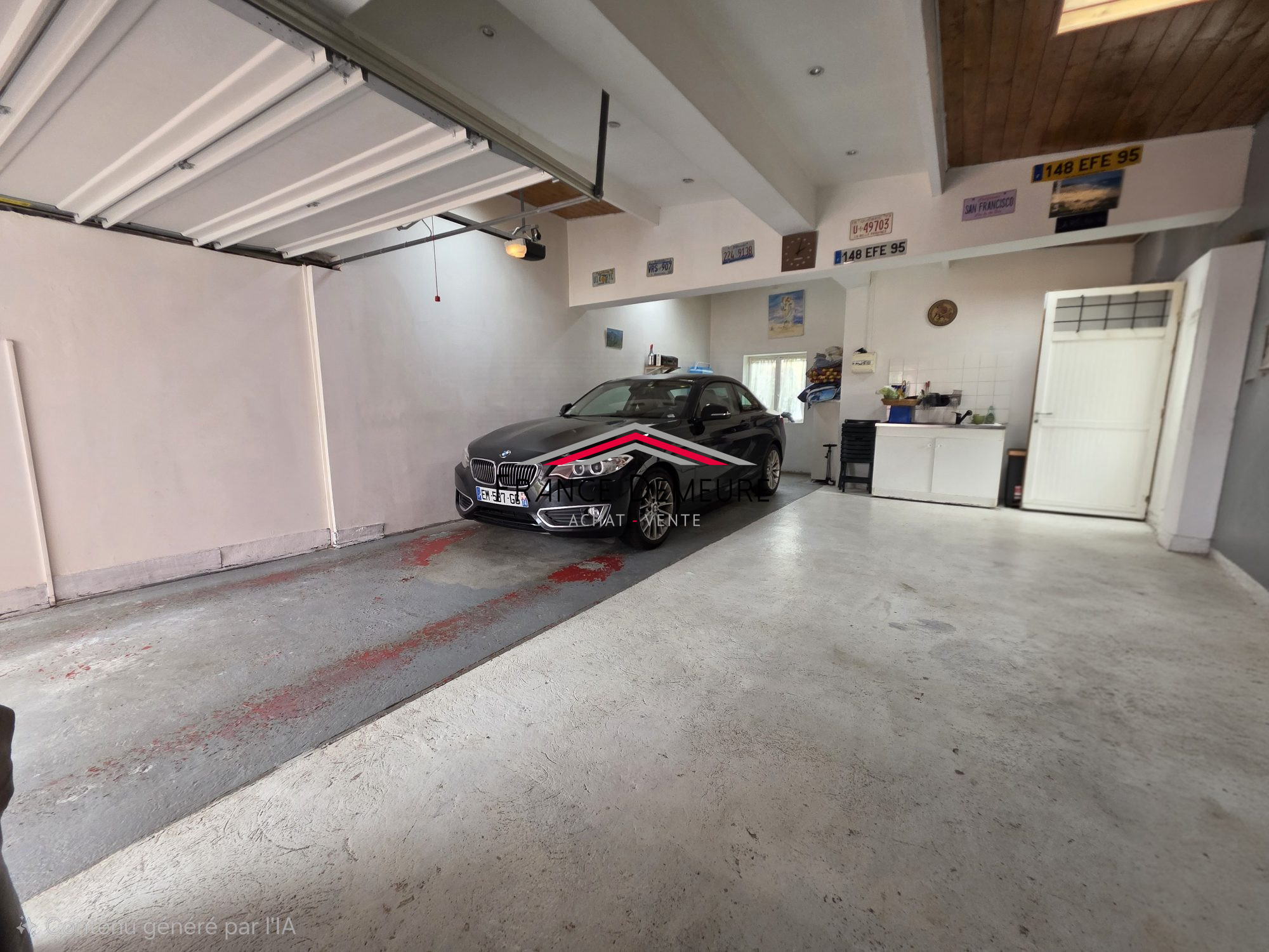 Le garage de plain-pied, d’une superficie de 48 m², bénéficie d’une fenêtre et de puits de lumière ainsi qu'un accès direct à la terrasse. Il offre un fort potentiel d’aménagement en espace de travail, atelier ou studio selon vos besoins.