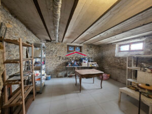 Une cave de 60m² comprenant deux pièces de rangement, une cave à vin/cellier, une buanderie/chaufferie ainsi qu'une pièce aménageable.